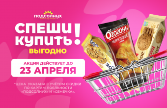 С 16 по 23 апреля во всех магазинах «Подсолнух» — грандиозные скидки для наших любимых покупателей!