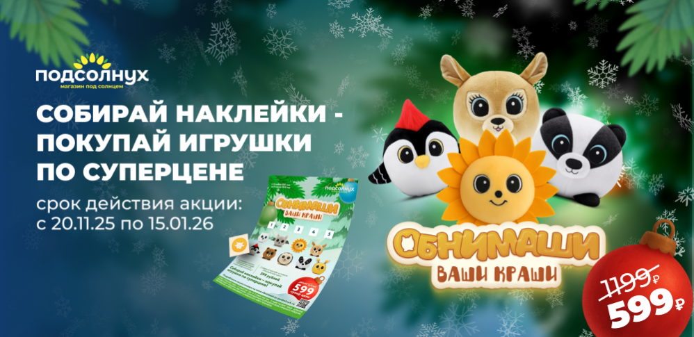 Успейте приобрести любимые сладости по суперценам — акция действует до 7 декабря 2025 года во всех магазинах «Подсолнух»!
