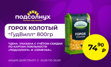 - Горох колотый «ГудВилл» 800 г — 74,90 руб.